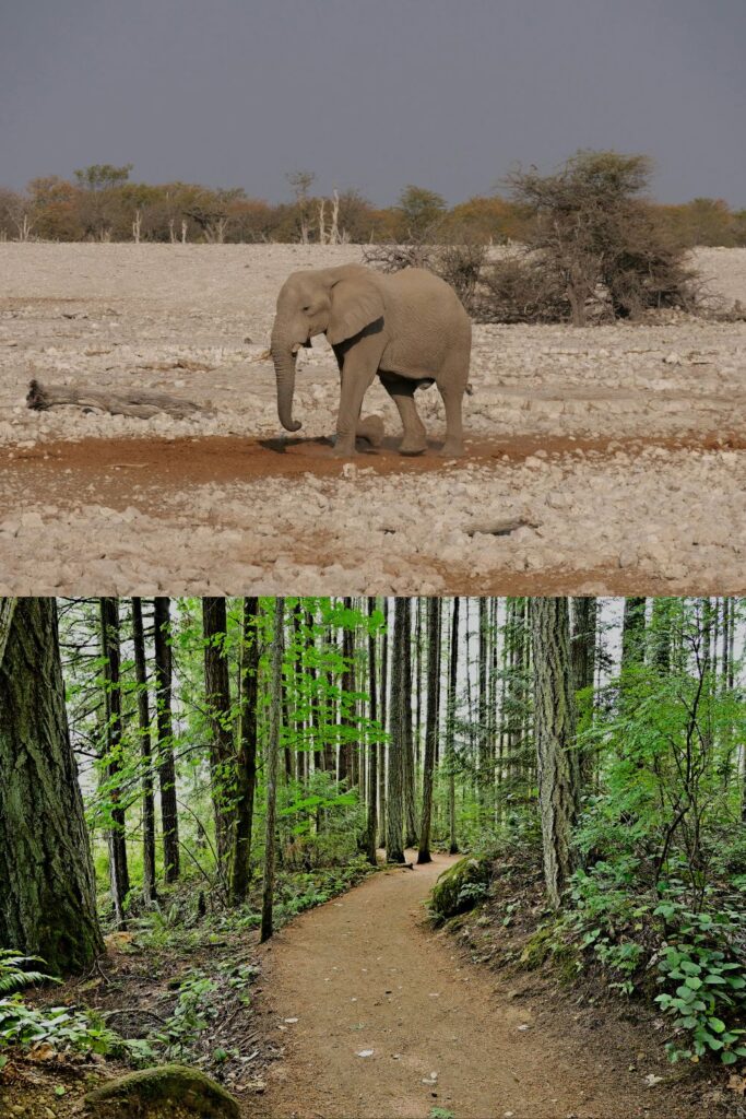 Elephants walk the same routes over and over, creating a walking path. Elephants make careful choices about where to walk. They will avoid steep terrain. They make paths with the knowledge of where food and water is most available.